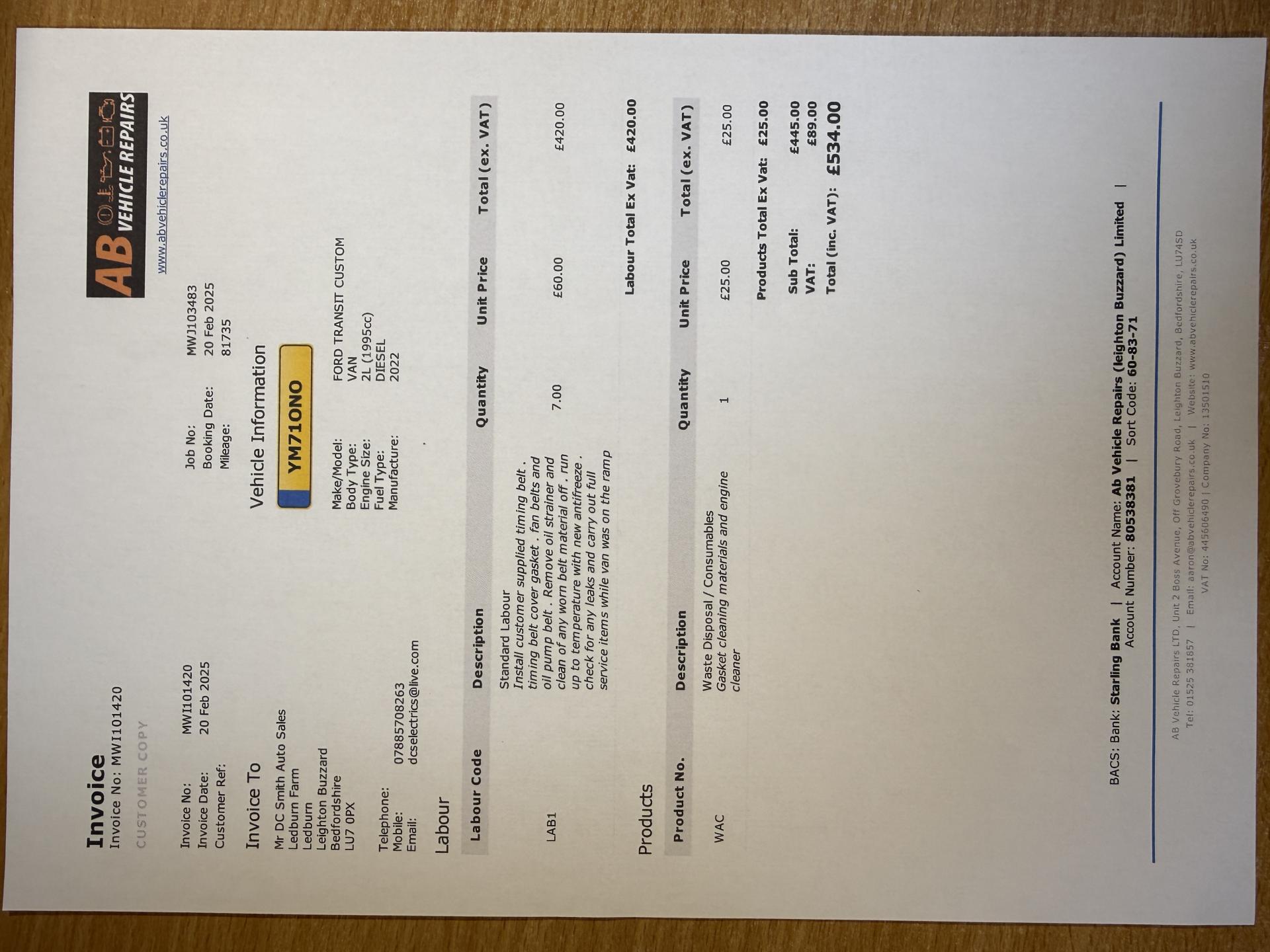 ✅Complete Wet Belt kit and timing belts completed with a full service 20/02/2025 @81735 Miles